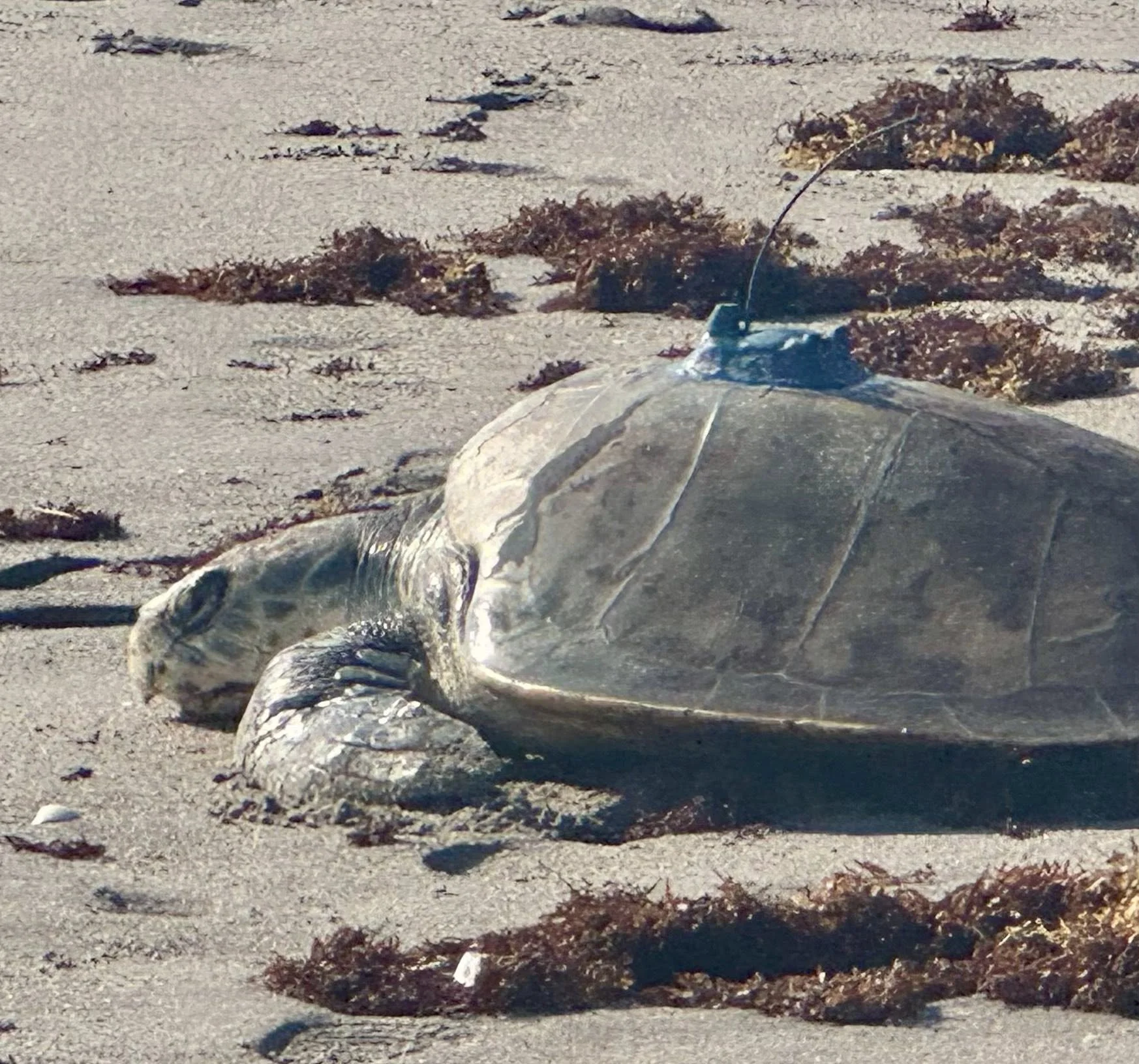 These amputee turtles, and many fully-limbed ones as well, are wearing tags equipped with a “saltwater switch” that activates when the turtle surfaces, triggering the transmission of data to the satellites. Their location appears online after a 24-hour delay.