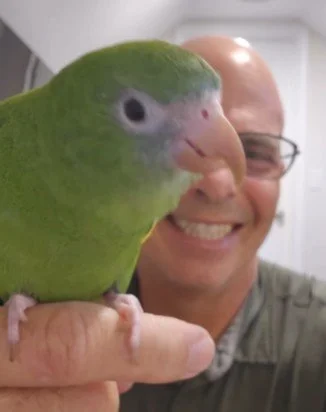 Steven Lawyer spends a lot of time with his pet parrot, Bebe. They’ve been on 500-mile bike rides together, gone skydiving (Bebe strapped to a backpack), and lately, scuba diving in the Bahamas.